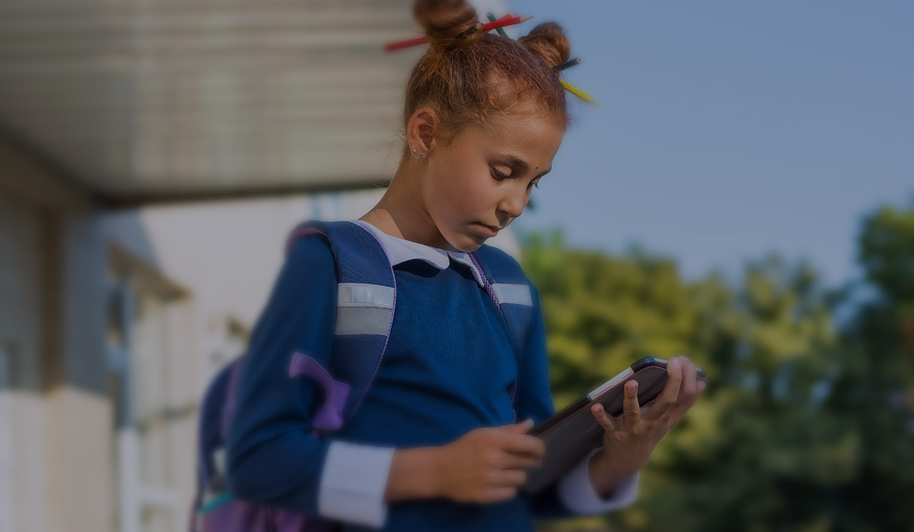 Mixed-race boy in glasses rising hand for answer during lesson
